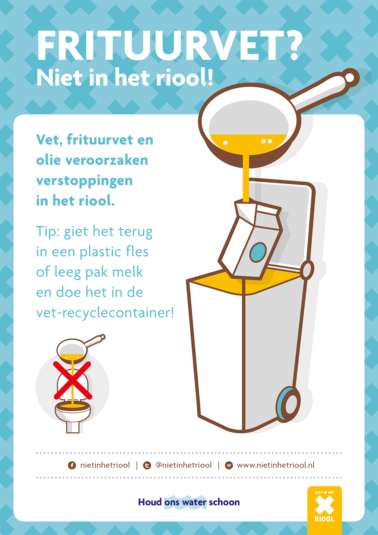 Bekijk ook het materialen van de campagne ‘Niet in het riool’ in de andere talen Arabisch, Duits, Engels, Oekraïens, Pools en Turks.